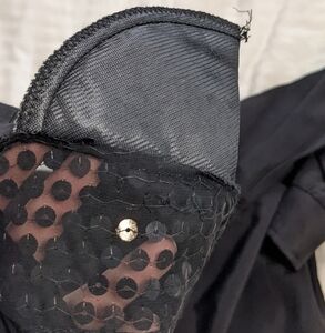 Try 1 Vintage button up shirt. there is no size however I did include pit to pit measurements in the pictures. I wear a size large to extra large and it fit me there are slight shoulder pads and the shoulder panels are sheer however the shoulder pads make it not really see through. there is sequence on the left breast pocket and on the shoulder panels. the top four buttons are big fake crystals in the bottom two are plain black. the material is nice and lightweight and there are buttons at the wrist that are the big fake Crystal looking things.