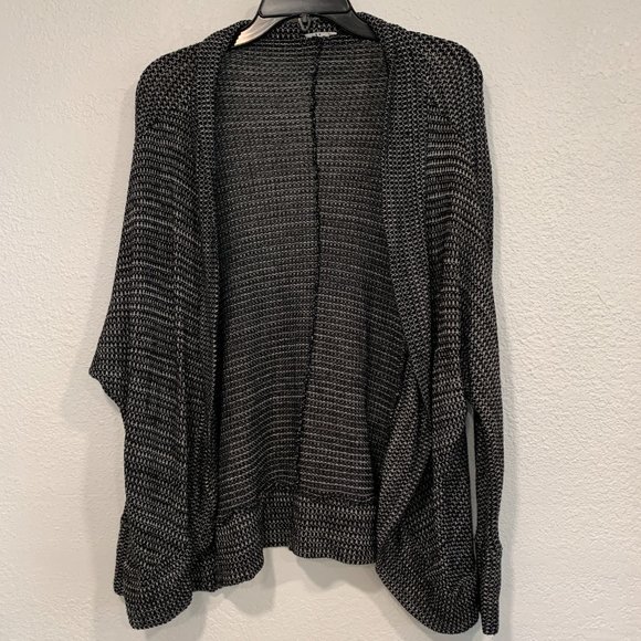 Try ! This Brand Open Front Cardigan Sweater ~ Stretchy and Super Soft ~ Black with Light Gray Stitching ~ 3/4 Length Dolman Sleeves ~ Lightweight and Comfortable ~ Women's Size Medium ~ Length is Approximately 26 inches ~ Excellent Gentle Pre-Owned Condition from a Smoke-Free Home ~ Sizing and Fabric Information Tags are Missing ~ From a Smoke-Free Home