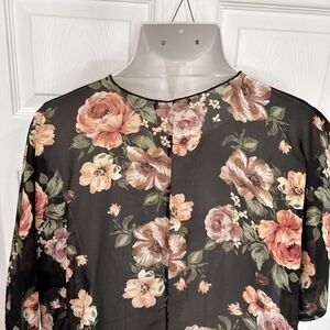 Try! This Women's S Kimono Blouse Black & Pink Floral Semi Sheer Cardigan