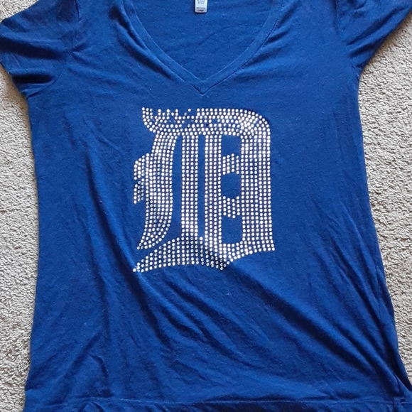 Navy blue shirt with Detroit symbol in jams a few of the gems are missing but it is in great condition and very comfortable