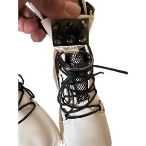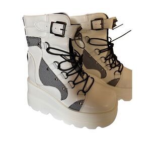 Tscoyuki Platform White & Black Ankle Boots for Women Chunky High Heel Booties G