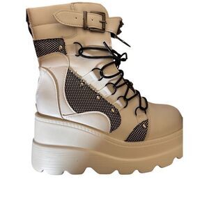 Style: Platform Ankle Boots for Women Chunky High Heel Booties Goth Round Toe Combat Boots Lace Up