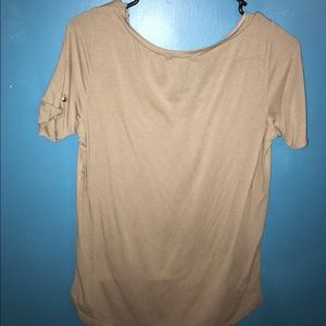 It's a tanish rose gold almost nude color. It has a gold zipper in the left front pocket and little gold bottoms on the arms, never worn!
