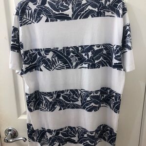 Blue and white T-shirt with tropical print that is in excellent condition and has been worn once!