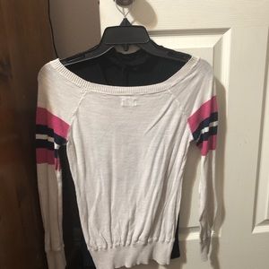 Cream long sleeve t-shirt, wide shouldered, small