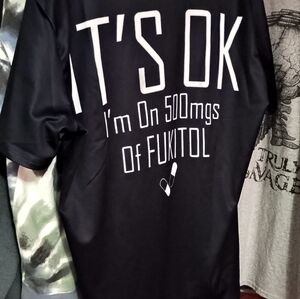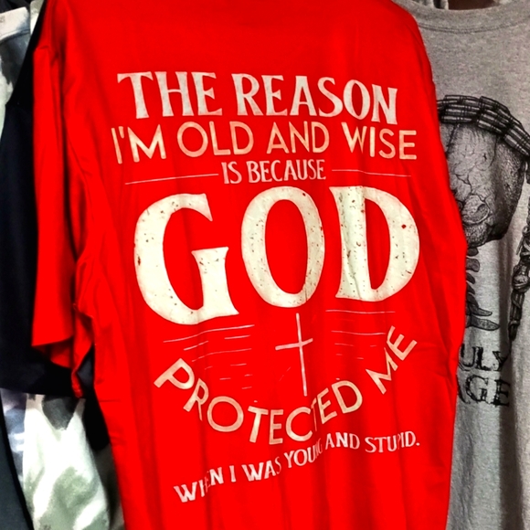 these are shirts that do not fit me unfortunately....these are brand new bought off the internet....mostly christian based sayings but more so just positive food for thought stuff...they are men's large and made mostly from polyester and spandex but some are thicker material....