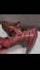 A burnt red leather color with brown pinstripe leather on sides/heel. So very beautiful and unique.