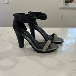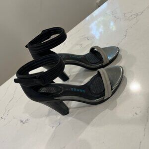 Tsubo Black Heels Size 9 Avant Garde Style with Silver tones layers