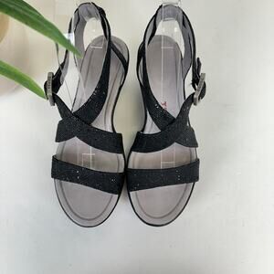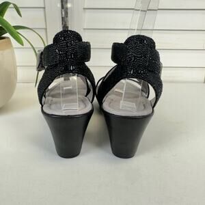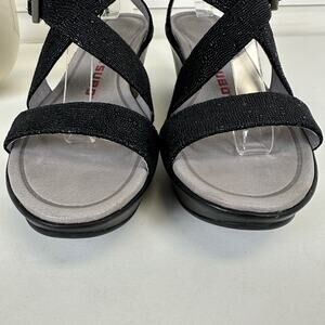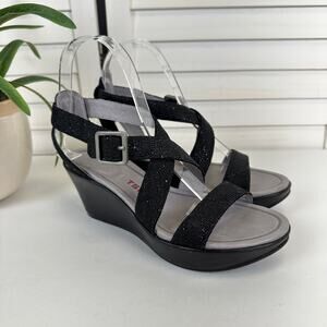 Tsubo Black Olivette Rhinestone Wedge Heel Sandals Comfort Shoe Size 6.5