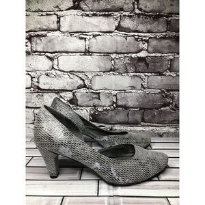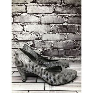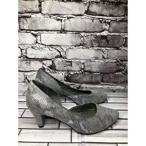 Tsubo Gray Leather Slip On Pump Snake Skin Pump Heels Women Sz 8.5US/39.5EU