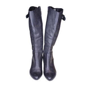 Tsubo High Heel Boots Black Leather Knee Boots Buckle Detail Size 7