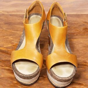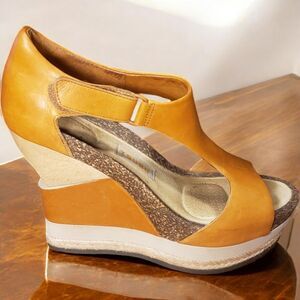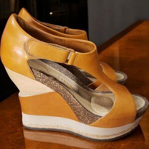 Tsubo Isara Leather / Wood Sculptural Wedges~$240