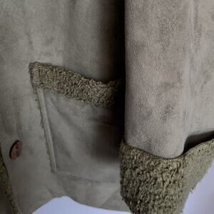 Tsumani Faux Sherpa Lined Suede Coat Jacket Small Olive Green Cottage