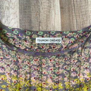 Tsumori Chisato Womens Multicolor Floral Pleated Front Midi Aline Dress Size 2