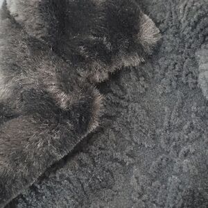 - Black faux fur with monochrome textured floral design evoke a vintage 70's aesthetic