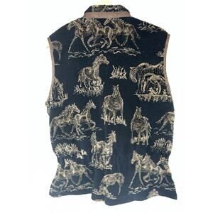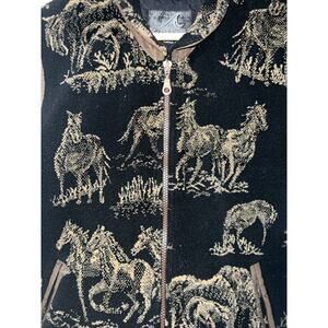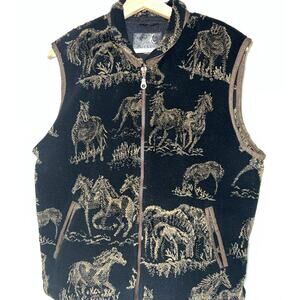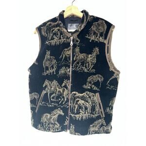 Tsunami Women's Fleece Vest With Horse Pattern Size L Large in Black/Tan