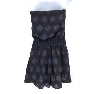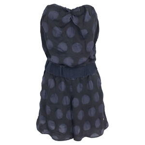 Tt Strapless Tube Romper S Polka Dot Sweetheart Elastic Waist Pockets Blue Black