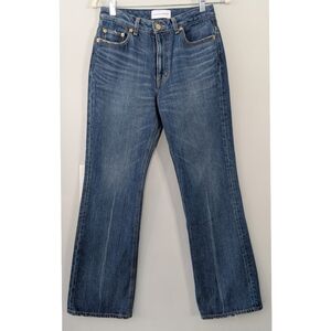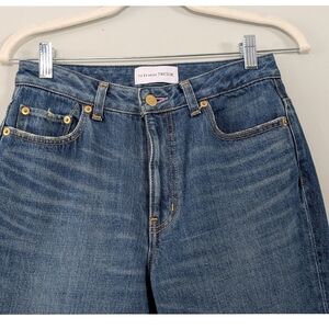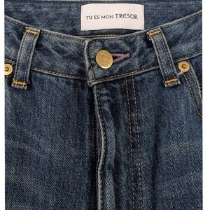 The Amethyst Jean is a slim-fit silhouette with a slight flare to create a flattering, elongated look. This flare-leg silhouette is crafted from Japanese hybrid fiber denim that lets the body move freely while being elegantly shaped. Each hand-finished pair is detailed with signature gold plated buttons and a custom buttonhole stitch in amethyst.