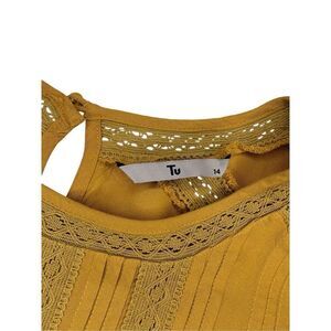 Tu (UK) mustard colored peasant blouse with pleated front - 10