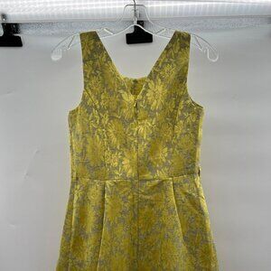 Tu Women's Sleeveless A-Line Knee Length Dress Yellow Floral Size 8 Zip