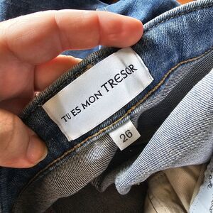 Tu es mon TRESOR Rose Quartz Jean Size 26 Light Wash Mid-rise Skinny Cropped