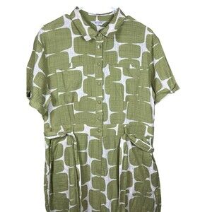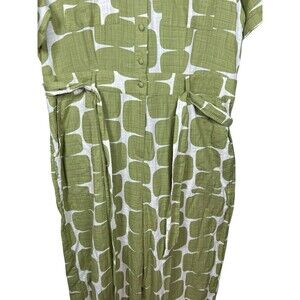 Tu x Scion Green White Abstract Jumpsuit UK 14 US 10 Cotton Belted Button Up
