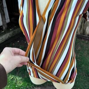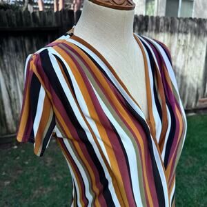 TuaTop Striped Surplice Wrap Short Sleeves High Low Multi Women's Size XS
