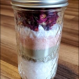 🛀❤Rose Petal Green Clay Tub Tea. Epsom salt with rose essential oil, french green clay, himalayan pink salt, dead sea salt, sodium bicarbonate, rose buds/petals. 12oz jar comes with 3 tea bags.