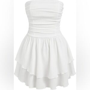Tube Ruched Ruffle Strapless White Layered Mini Dress