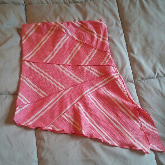 Y.k. tube top. Good condition other than the top of the shirt is a little strange, it seems (to me) like it should be folded over and sewn. But, it was like that when I bought it brand new and works great anyways.