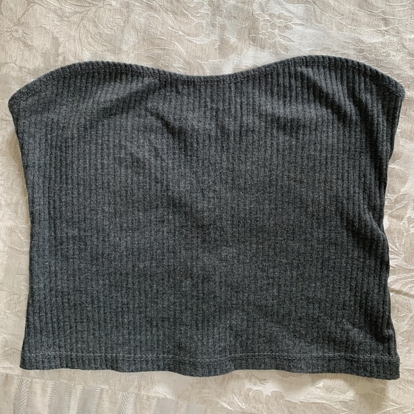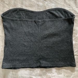 Dark grey ribbed tube top with sweetheart neckline.