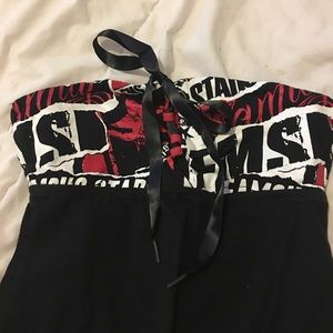 Never worn to small black with red and white super cute and fun