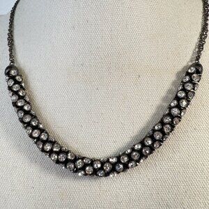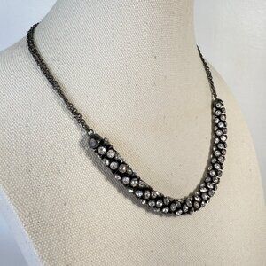 Tubular Crystal Necklace Gunmetal Black Classic Statement