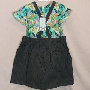 Tuc Tuc Floral Shirt and Gray Pinafore Dress 2 Piece Matching Set