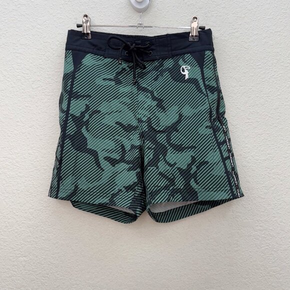Tucann Striped Green Camo 5" Lined Stretch Swim Trunks Shorts Mens size Small