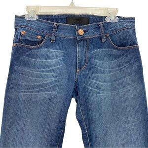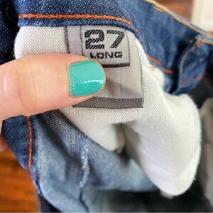 Tucci Slim Straight Jeans Womens Size 28 Tall Mid Low Rise Distressed Blue Denim