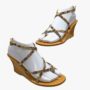 Tuccia Di Capri Embossed Leather Strappy Wedge Sandals