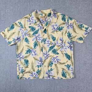 Tuckahoe Joe Shirt Mens Large Linen Blend Short Sleeve Floral Hawaiian Button Dn