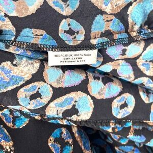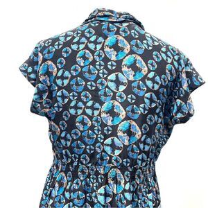 Tucker 100% Silk short sleeved dress, Women's size Large, blue black knee-length