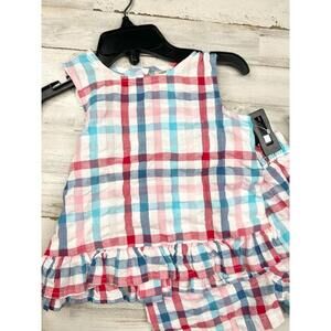 Tucker And Tate Red Blue White Plaid Sleeveless Ruffle Hem Plaid Top and Shorts Set 18 Months