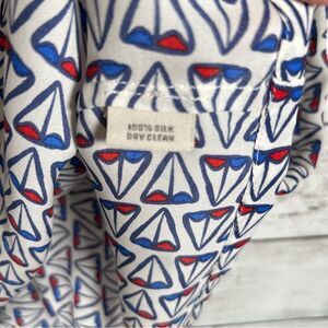 Tucker Camisole Silk Crepe Top Size P Geometric White Blue Red Nautical 38” Bust