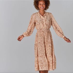 Meet the Juliette Dress. This midi-length style features a smocked waist, voluminous sleeves, and a button-up collar with a tie at the neck. Feminine and flattering, Juliette is a whimsical addition to everyone’s closet.