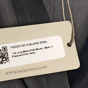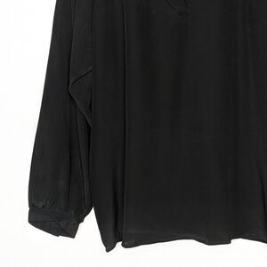 Tucker Long Sleeve Polo Blouse Black in Crepe de Chine Silk Top