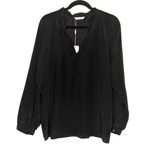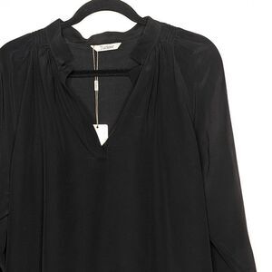 A simple, elegant silhouette. It's flattering v-neck placket, stand up notched collar and more streamlined fit makes this top perfect to wear tucked in or out with your favorite skirt or jeans. It is also lovely layered over a thin knit. NWOT.