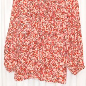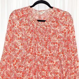 Tucker NYC Classic Blouse Red Sweet Pea in Crepe de Chine Silk Top Long Sleeves