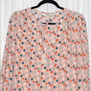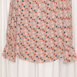 Tucker NYC Juliette Blouse Mint Blush Poppies Micro in Silk Crepe de Chine Top