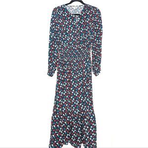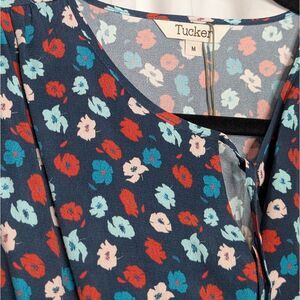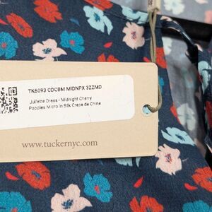 Tucker NYC Juliette Dress Midnight Cherry Poppies Micro in Silk Crepe de Chine