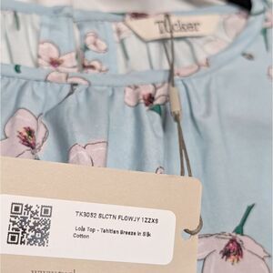 Tucker NYC Lola Top Tahitian Breeze in Silk Cotton Floral Baby Blue Crewneck