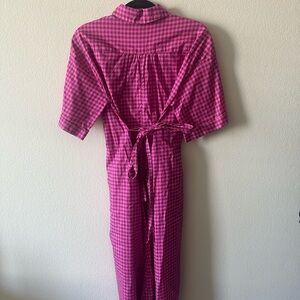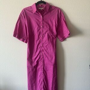 Tucker Pink and Purple Gingham button down tie waist Midi Dress- XS