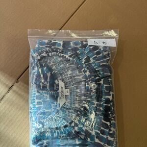 Tucker Silk Blend 3/4 Sleeve Button Down Belted Midi Dress Blue